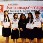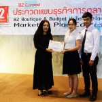 เครือโรงแรมบีทู บูติค แอนด์ บัดเจท ขอแสดงความยินดีแก่น้อง ๆ นักศึกษาที่ได้รับรางวัลในโครงการประกวดแผนการตลาด B2 Boutique & Budget Hotel Thailand Marketing Plan Contest ครั้งที่ 3 และขอขอบคุณทั้ง 8 มหาวิทยาลัย ได้แก่ มหาวิทยาลัยเชียงใหม่ มหาวิทยาลัยแม่โจ้ มหาวิทยาลัยราชภัฏเชียงใหม่ มหาวิทยาลัยราชภัฎเชียงราย มหาวิทยาลัยฟาร์อีสเทิร์น มหาวิทยาลัยราชภัฏจันทร์เกษม มหาวิทยาลัยแม่ฟ้าหลวง และ มหาวิทยาลัยเทคโนโลยีราชมงคล ที่ให้การสนับสนุนนักศึกษาเข้าร่วมการประกวด โครงการประกวดแผนการตลาด บีทู บูติค แอนด์ บัดเจ็ทโฮเท็ล ครั้งที่ 3 ภายใต้หัวข้อที่ว่า “กลยุทธ์การประชาสัมพันธ์ธุรกิจโรงแรมภายใต้กระแส Social Media เพื่อสร้างการรับรู้พร้อมก้าวสู่ประชาคมเศรษฐกิจอาเซียน (AEC)” ในครั้งนี้ ประสบความสำเร็จและบรรลุวัตถุประสงค์ของการจัดงานได้ด้วยดี ซึ่งผลการตัดสินทีมผู้ชนะเลิศจากคณะกรรมการผู้ทรงคุณวุฒิ มีดังต่อไปนี้